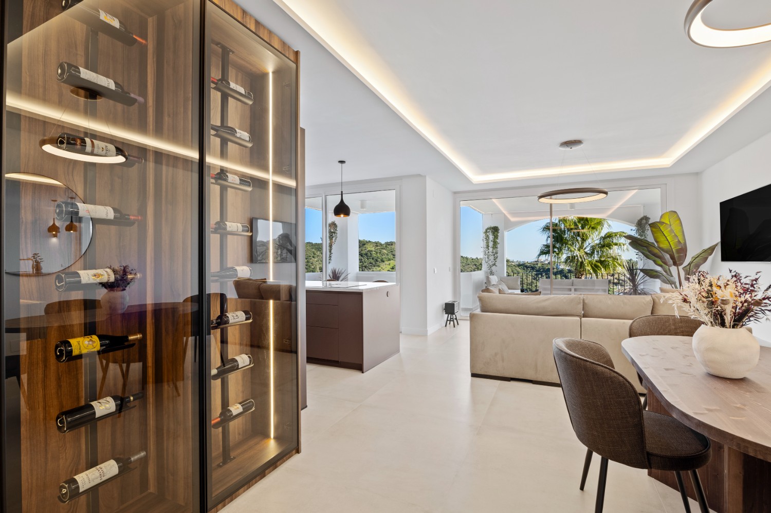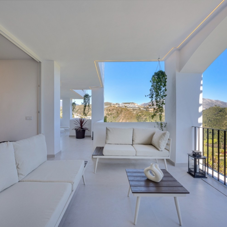 Step out onto the expansive terrace, thoughtfully designed with ambient LED lighting and a chic outdoor lounge area — the perfect setting to relax and soak in the serene atmosphere of Benahavís’ rolling hills.