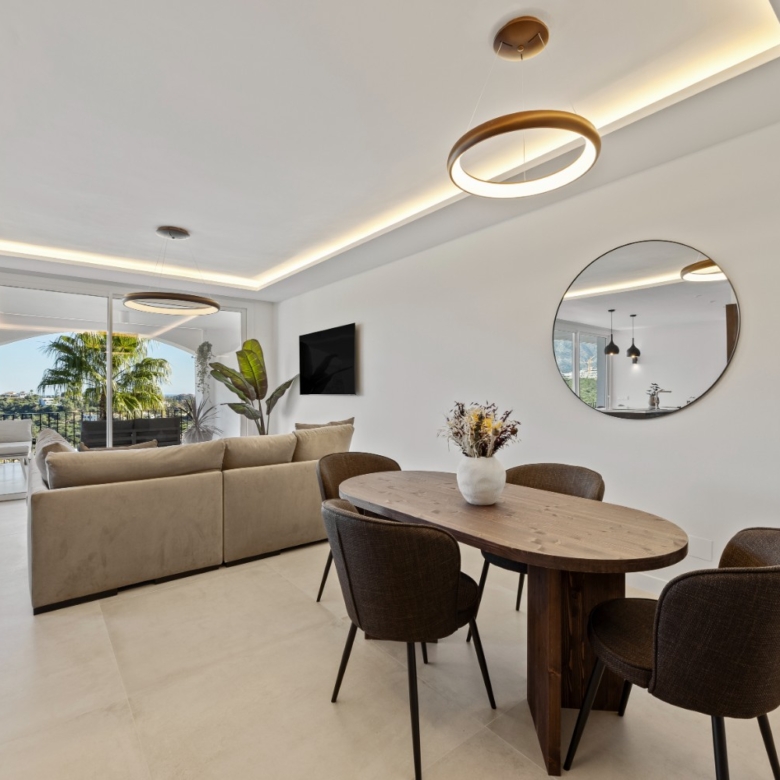 Nestled within the exclusive enclave of Altos de La Quinta, this beautifully appointed 3-bedroom, 3-bathroom apartment offers an exceptional blend of contemporary comfort and natural beauty. Surrounded by panoramic mountain, sea, and golf course views, the residence promises an elevated lifestyle in the heart of the Costa del Sol.