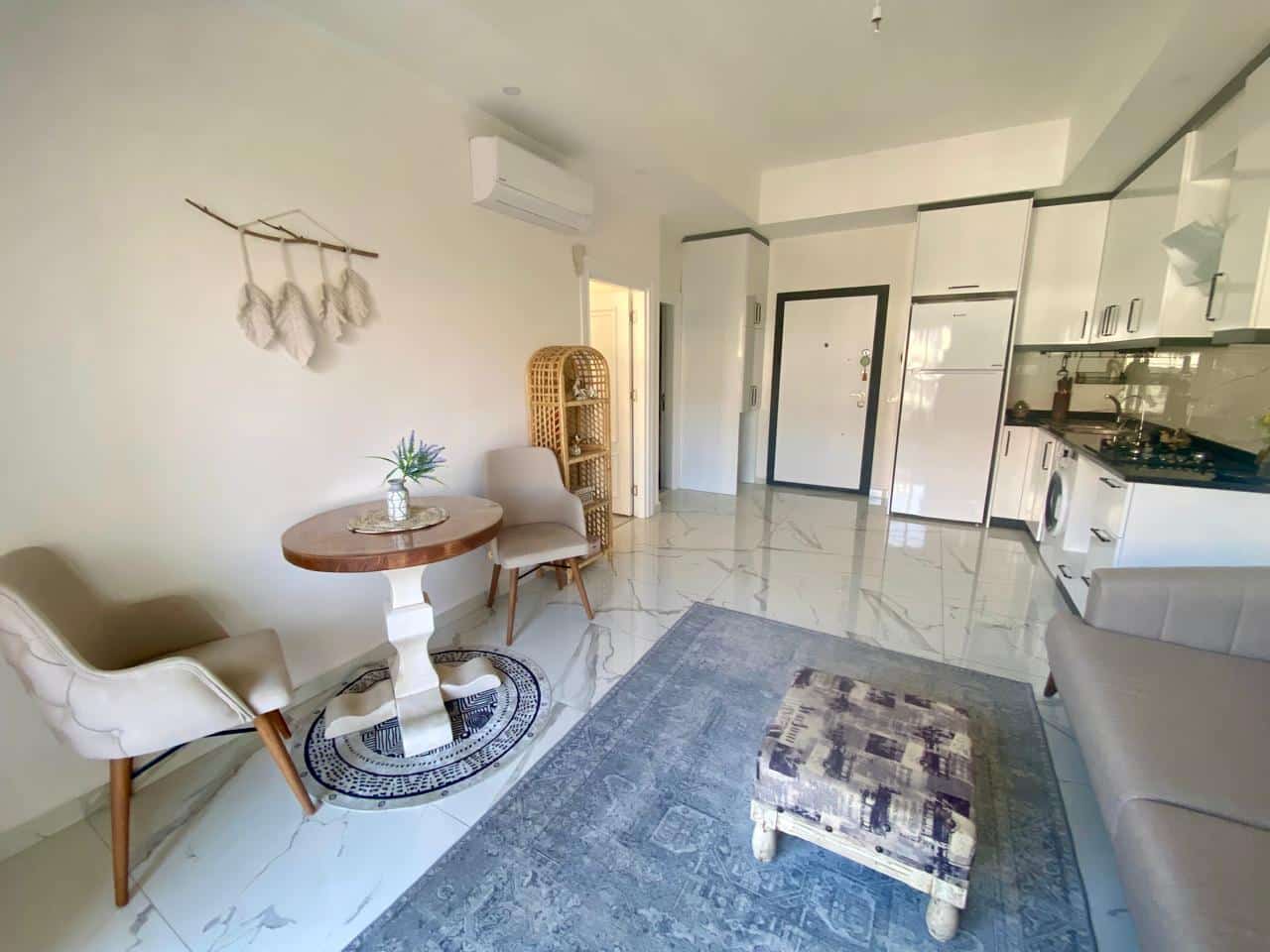 Not every apartment needs to be large to feel welcoming. This2 room apartment for sale in Alanyashows how thoughtful decoration and modern design can turn 60 m² into a stylish and comfortable living space. Located insideCity Corner Residence, right in the center of Alanya, the apartment combines the convenience of urban living with a calm, cozy atmosphere.