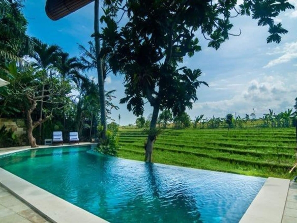 Available on a FREEHOLD basis, this delightful, fullyfurnished, single-storey villa is characterised by an openconcept living room overlooking a12m pool against a backdrop of rice terraces. Antique timber posts, beams and Balinese doors create a rustic touch. Each of the 3 air-conditioned bedrooms has a TV, a peaceful rice field & mountain view, and an ensuite bathroom. The kitchen is fully-equipped, while the bale relaxation pavilion
