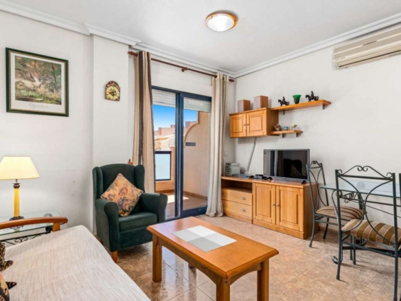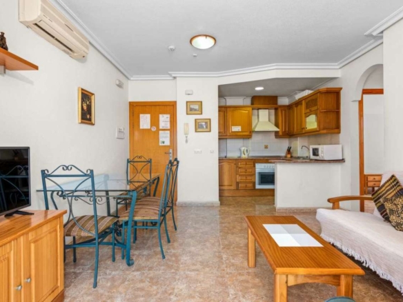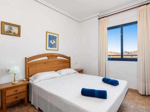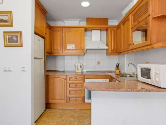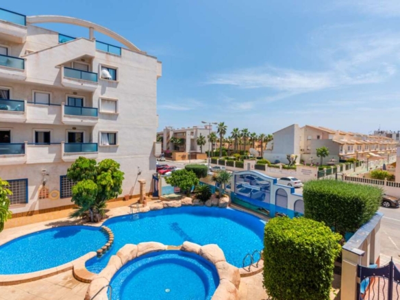 The flat is located in Dehesa de Campoamor. The famous Cabo Roig beach with its white sandy beaches is within walking distance. Here you can participate in various water sports such as sailing, jet skiing, diving or family boat trips that are very popular in this coastal area with its own marina. The so-called winter beach is really a hit in the winter months. At the front of the complex is the strip, with all its bars, shops and restaurants. Alicante Airport is a 40-minute drive away.