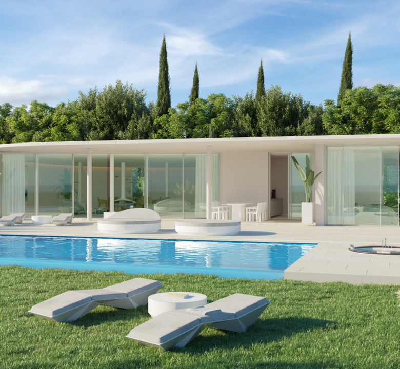 Characterised by the visual strength of its organic forms and spectacular sea views, this home stands as the villa of nature. Dressed in white with touches of wood that go hand in hand to create a suggestive visual play of textures.