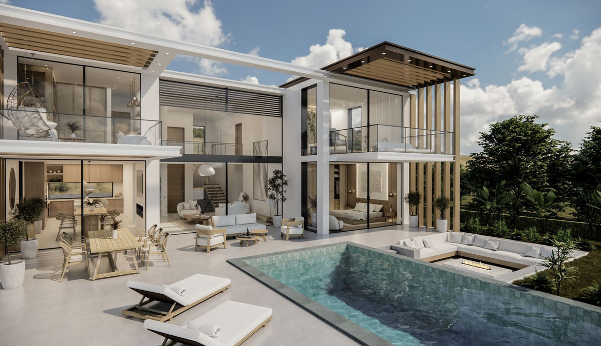 This contemporary villa stands out for its architectural design that reflects a game of volumes with a contemporary, Mediterranean and elegant aesthetic, offering relaxation and comfort, inviting to immerse in unique lifestyle.