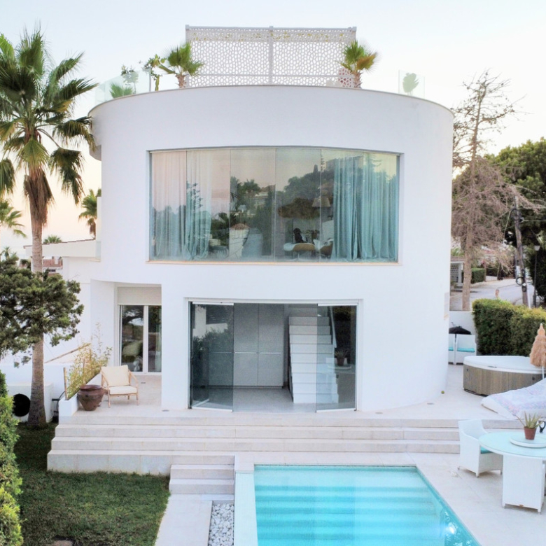 This iconic villa is located in the private urbanization of Marbesa, close to the beach, on the east side of Marbella. It is 400 meters walking distance or 10 minutes walk from the Mediterranean Sea and the beach, 1.5 km from the beach and the protected dunes of Cabopino and 1.9 km from the hotels Marriot and Don Carlos and Nikki Beach Marbella. Marbesa is a quiet and prestigious neighborhoud known for its beautiful coastline and its proximity to Marbella.