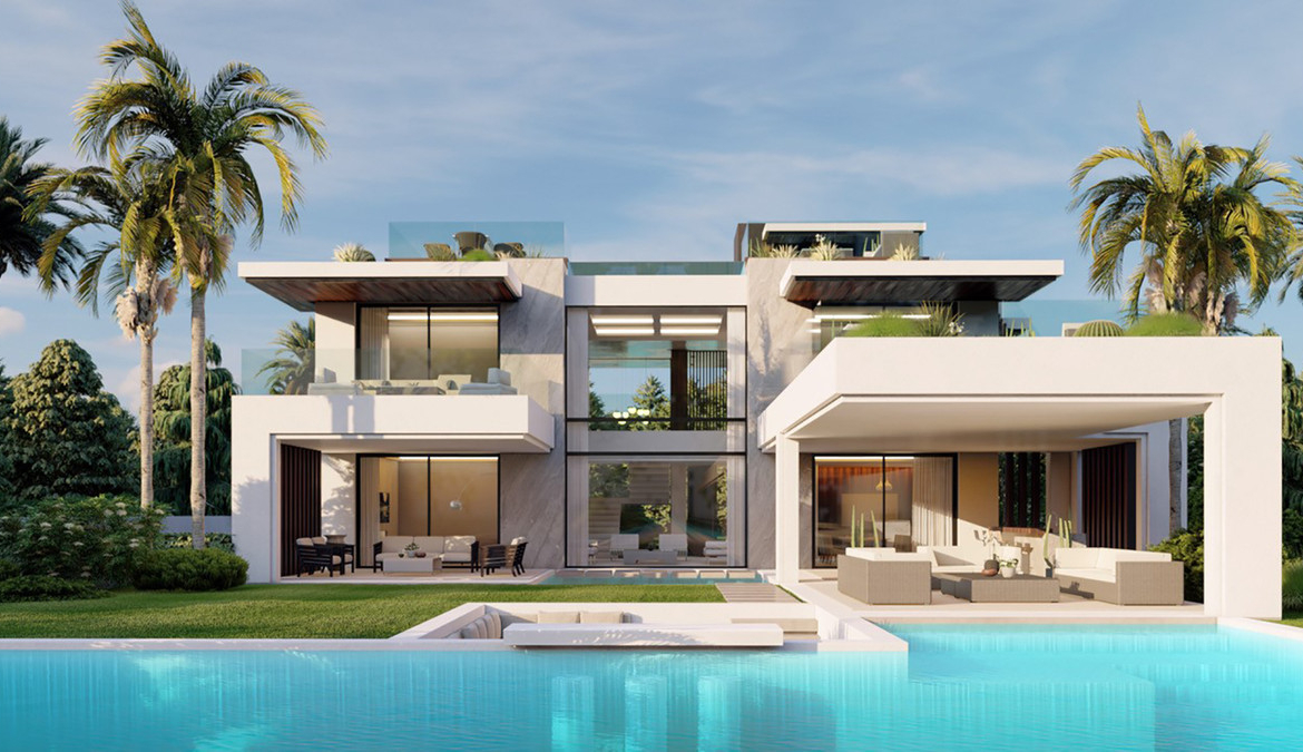 This splendid luxury villa project is set on a private plot of 1,550 m², located just a few minutes from Puerto Banús in the exclusive area of Altos de Puente Romano on the Golden Mile.