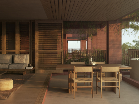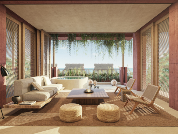 Own a luxurious 1,679 Ft2 condo at La Flia II, a beachfront development in La Barra, Puerto Escondido. Each unit features two principal bedrooms, 2.5 bathrooms, and two private terraces totaling 409 Ft2, complete with saltwater plunge pools offering stunning ocean views. Premium finishes include handcrafted plaster walls, sliding double-glazed windows, and sustainable green facades, combining elegance with functionality. These thoughtfully designed condos also come with a fully equipped kitchen, air conditioning, fans, and washer-dryer units. Enjoy access to exceptional amenities like a 164 ft saltwater pool, yoga studio, gym, co-working space, and holistic spa, making La Flia II the ultimate tropical retreat.