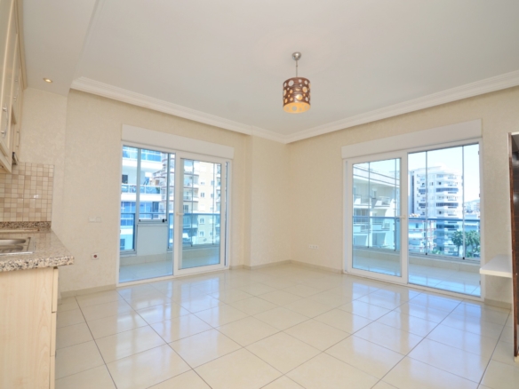 This Yekta Atılım 2flat for sale in Alanyais located in Mahmutlar, Alanya—just 350 meters from the Mediterranean Sea. Situated on the 6th floor of a modern residence, this 1+1 apartment offers 60 m² of unfurnished living space, one bathroom, a WC, and a private balcony. The layout is practical for both full-time residence and seasonal use.