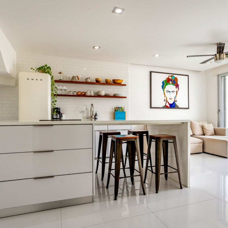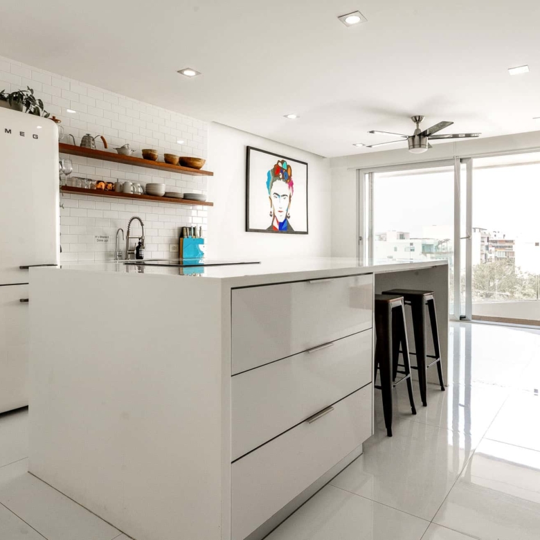 Stylish Interiors: Fully equipped kitchen, chic furnishings, and comfortable lounge spaces.