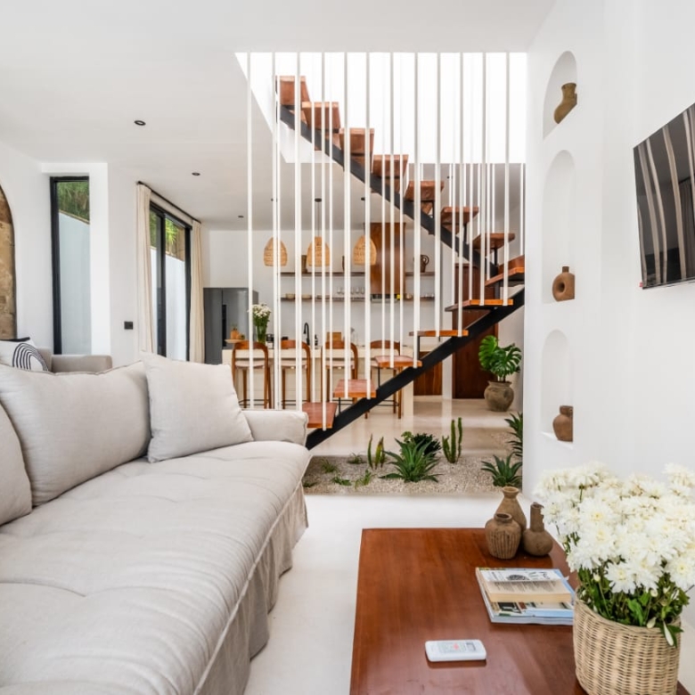 This beautifully designed Mediteranean villa is located in the highly desirable area of Umalas, just a short walk to cafés and restaurants, and only a 10-minute drive to the popular Café del Mar. Perfect for digital nomads, couples, or savvy investors, the villa is fully furnished, turnkey-ready, and features a tranquil green space view from the master bedroom balcony.
