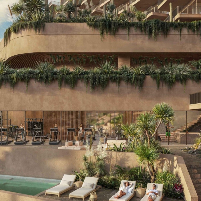 Ownership at DUNNA includes access to over 10,000 square meters (107,600 square feet) of amenities. Residents enjoy exclusive use of rooftop pools and bars, wellness areas with spa and gym facilities, adult and family pools, paddle and pickleball courts, reading lounges, private BBQ spaces, and curated dining concepts. The community also includes boutique shopping, art galleries, and an integrated short-term rental program with full-service management.