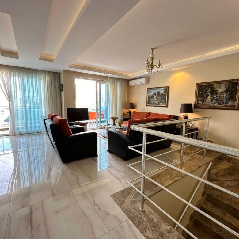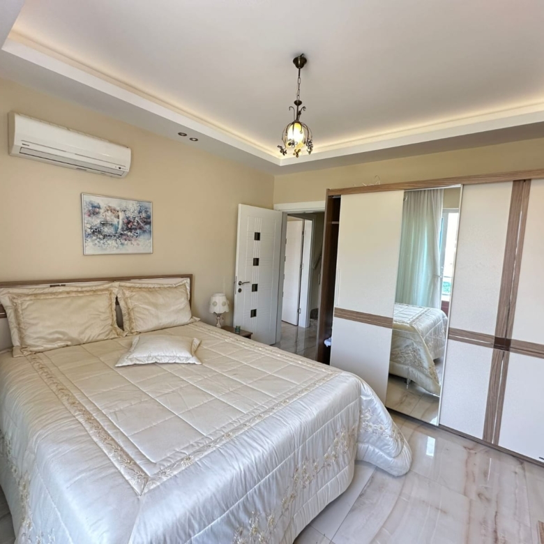 This duplex for sale in Mahmutlar offers 135 m² of living space with stunning nature and city views. The south and east-facing apartment is fully furnished, and all rooms are air-conditioned. It features an open kitchen with a spacious living room, 2 bathrooms, 2 WCs, and 2 balconies. The complex includes outdoor and indoor pools, fitness, sauna, hammam, children’s playground, generator, and more. Additional amenities include parking, a site manager, and a gazebo.