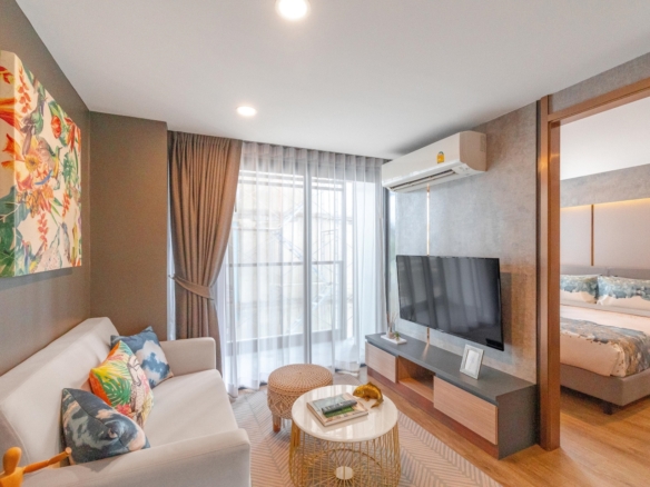 Experience sustainable luxury just 400 meters from the beach with this fully furnished 1-bedroom condo at Eco Resort Bangsaray. This 33 sqm unit offers a smart layout with a modern kitchen, cozy living area, and private balcony—some with sea views.