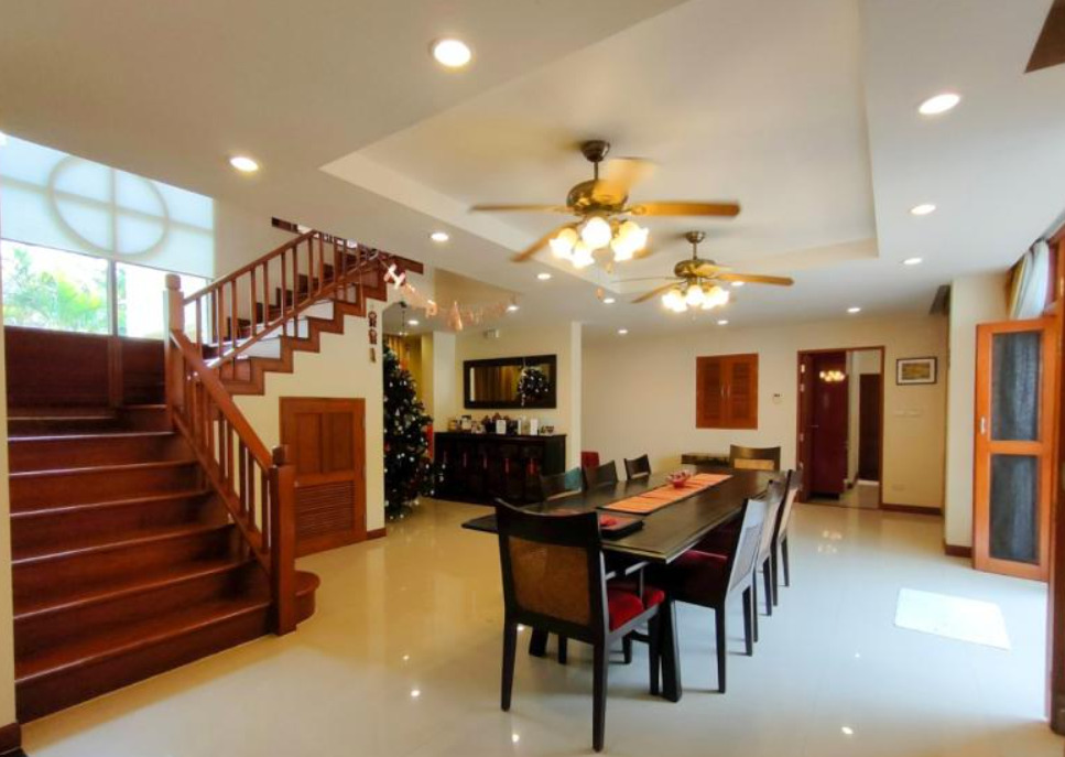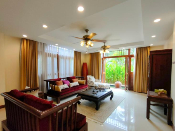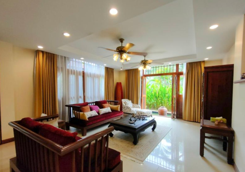 This beautifully designed 4-bedroom pool villa in Koh Kaew, Phuket offers an expansive 450 sqm of interior living space on a 653 sqm land plot, ideal for families seeking a peaceful residence in a convenient central location. With solid wood finishes, generous proportions, and lush garden views, this home delivers comfort, privacy, and timeless appeal. Set across two floors, the villa combines modern tropical architecture with thoughtful layout. Natural light flows through large wooden-framed windows and bi-fold doors, opening up to a private pool terrace and garden. The open-plan dining and living areas, stylish Western kitchen, and multiple storage rooms add to the home’s practicality and charm. Property Features: Price: THB 45,000,000 Land Area: 653 sqm Usable Area: 450 sqm Bedrooms: 4 ensuite Bathrooms: 5 (4 ensuite + 1 guest WC) Maid’s Room: 1 Ownership: Freehold (Thai Company) View: Garden and Pool Status: Ready to Move In Style: Modern tropical two-storey home Interior Highlights: Bright open-plan living and dining area with tropical garden views Fully equipped Western kitchen – oven, microwave, dishwasher, soft-close drawers, side-by-side fridge, and more Living area with Smart TV and tranquil pond-side outlook Master bedroom with ensuite, bathtub, dual vanities, and pool/garden views Spacious bedrooms with walk-in closets and private balconies Solid teak wood parquet flooring on upper floor Ample built-in storage throughout – including 3 dedicated storage rooms Exterior Features: Private swimming pool Tropical garden with mature trees Covered outdoor terrace for dining or relaxing Private covered carport for 2 vehicles Decorative pond and fountain beside living area Community & Amenities: Secure gated community with 24-hour security Shared green space and children’s play area Peaceful residential atmosphere with no tourist traffic Location – Koh Kaew, Phuket: Situated in a family-friendly residential neighborhood, this home offers excellent access to schools, shopping, and lifestyle amenities: 5 mins to British International School 10 mins to Boat Lagoon & Royal Phuket Marina 15 mins to Central Festival, Tesco Lotus, and Phuket Town 20–25 mins to Bang Tao and Patong beaches 35 mins to Phuket International Airport Contact ThaiEstate today to schedule a private viewing or request more information.