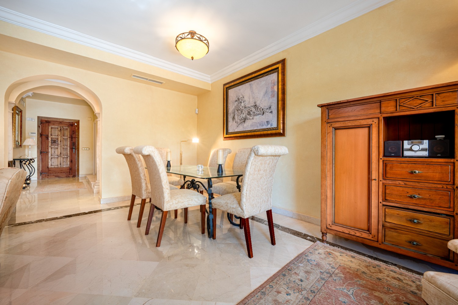 This stylish and spacious townhouse sits in a peaceful, leafy street within one of Puerto Banus’ most sought-after gated communities. Surrounded by lush greenery and palm-lined avenues, it offers a perfect blend of tranquility and convenience.