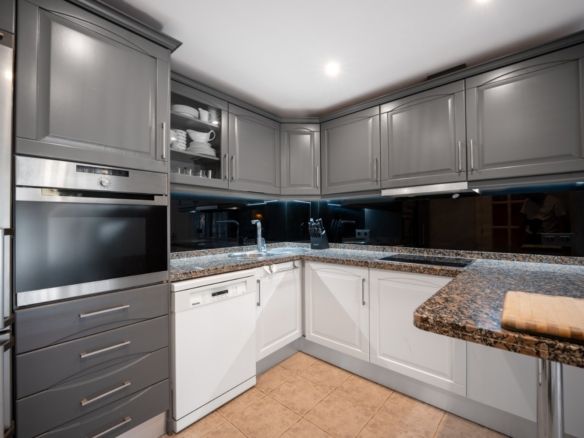 Upstairs, three double bedrooms each have ensuite bathrooms and plenty of storage. The master suite includes a private terrace with garden views. All bathrooms feature underfloor heating and elegant marble finishes.