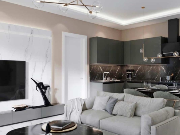 This elegant 2 bedroom apartment on the first floor offers modern design and high-end finishes. Located in a prime area near prestigious grammar and private schools, it features an open-plan living and dining area, a sleek kitchen, and a private patio. Ideal for families seeking convenience and quality education. The property is located to proximity to schools