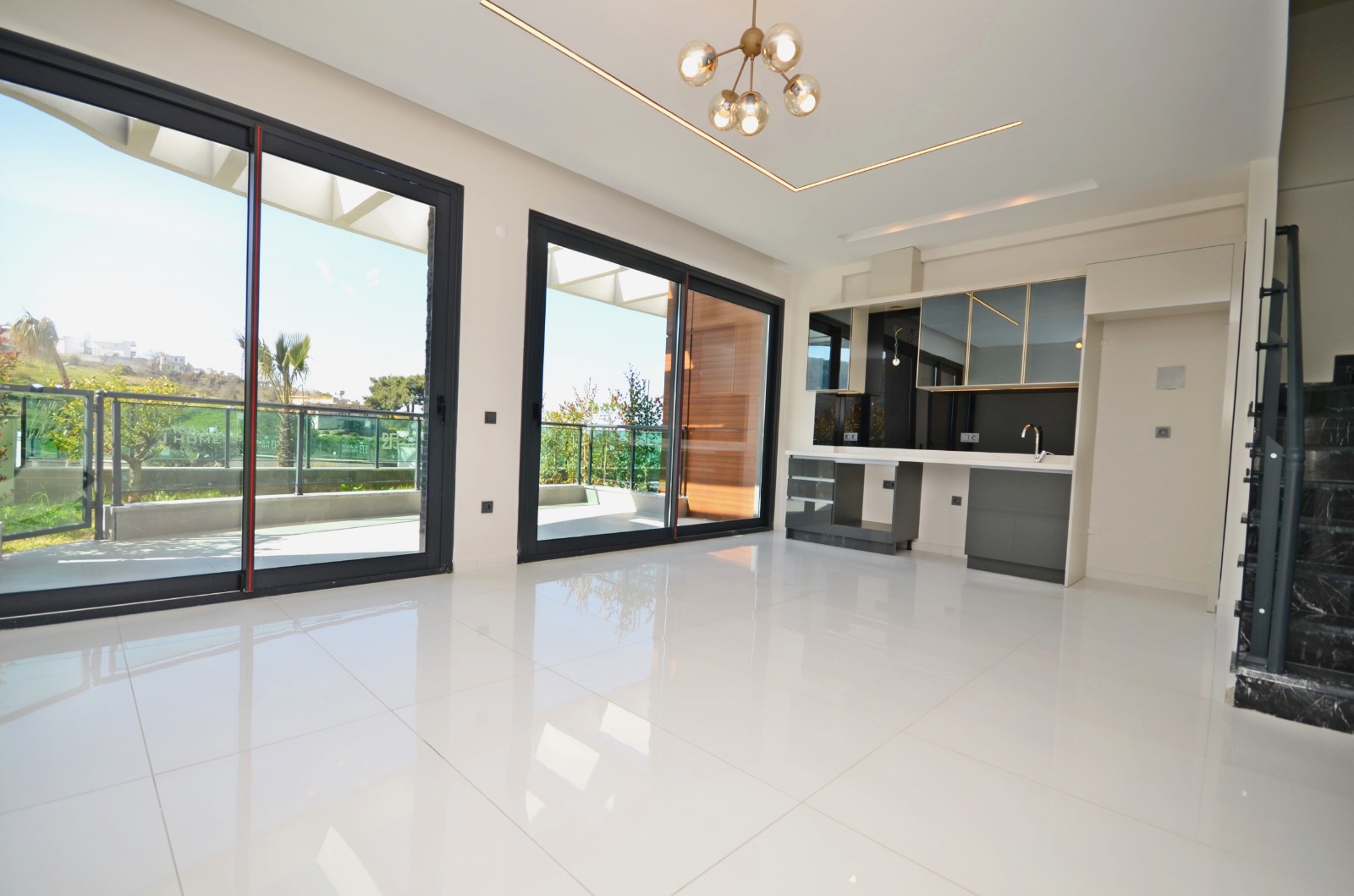 Luxury duplex apartment in Kargicak – This luxury duplex apartment in Kargicak offers a premium living experience with 90 m² of stylishly designed space spread across two floors. The apartment features 2 bedrooms, 2 bathrooms, and 2 balconies, allowing residents to enjoy beautiful sea and pool views. A private garden adds to the exclusivity, creating a perfect space for relaxation. The residence is fully furnished with high-end decor, ensuring both comfort and elegance.