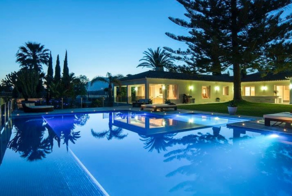 Located in Elviria, this southwest facing contemporary villa is set on a large plot with landscaped tropical garden with a large pool with chill-out areas and a Jacuzzi. The garden area enjoys amazing views of the Mediterranean and the African coastline, preserving a high degree of privacy. The main house comprises 4 large bedrooms en-suite, a spacious and bright living room with adjoining dining area and access to the terrace and a modern, fully fitted and equipped kitchen. The villa has 3 further self-contained apartments each with 2 bedrooms en-suite, the 1st apartment is situated in the back of the villa, the 2nd one in the semi-basement and a 3rd apartment is in a semi basement below the pool area. Further features include air conditioning h/c, double glazing, storage room, alarm system. This is an ideal family residence or a good holiday home with a great rental potential.