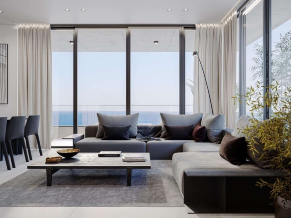 This spacious three-bedroom, whole-floor apartment defines luxury living, where dynamic yet clean design meets minimalistic tones and breathtaking Mediterranean views. Wake up in your dreamy bedroom, draw back the curtains, and let the sunlight flood in through oversized windows. Start your day with a coffee in hand, gazing at the endless blue of the ocean—what could be better? Designed for elegance and comfort, the open-plan living room seamlessly connects to the kitchen and dining area. The master bedroom features a stylish en-suite, while concealed air conditioning, toilets, and mixers enhance the sleek aesthetic. Indulge in spa-like showers with LED-lit shelves, adding both function and ambiance. A large covered balcony extends from the living room, while a smaller one by the kitchen offers an intimate outdoor retreat. Fully furnished and equipped with high-end electrical appliances, this home is ready to offer an effortless, refined lifestyle.