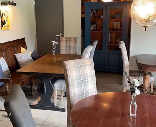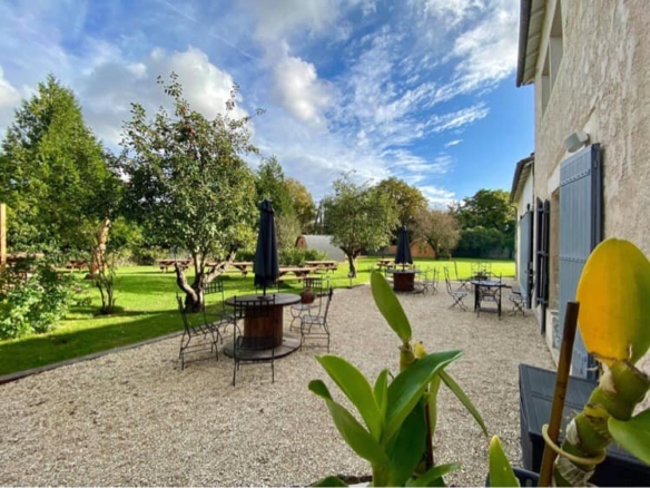Just a short stroll from the chateau, Le Relais D’Aulnay is the convivial counterpart to the château’s grandeur. This is not just a business; it is a beloved local institution, a ‘home from home’ with a warm and welcoming atmosphere. Its bar, with an open fireplace and wood décor, exudes a rustic, friendly charm that invites patrons to linger over a drink and conversation. A smaller room behind the bar is perfect for intimate functions, while the expansive bar area can be used for larger gatherings.