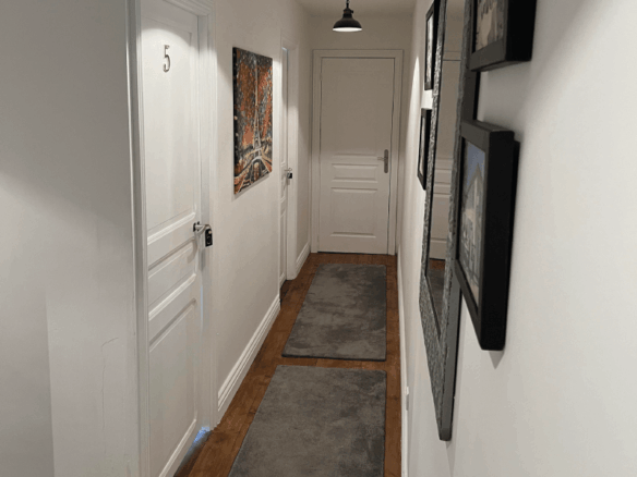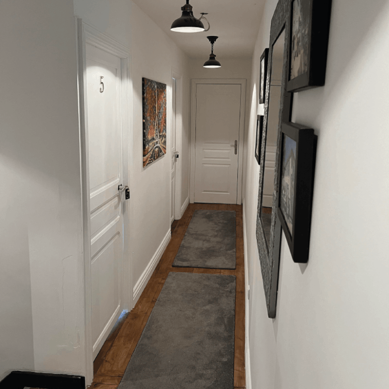 Today, the château has been lovingly returned to its former glory while being expertly adapted for 21st-century luxury. The journey through its past begins the moment you step into the intricately tiled hallway, where a grand piano greets you, setting a tone of elegance and sophistication. The main living spaces are designed for comfort and refinement. A comfortable sitting room, with its striking deep blue sofas contrasting against a bright, airy décor, is bathed in natural light streaming through the expansive windows. For leisure and entertainment, a dedicated games room with a snooker table provides a space for lighthearted competition and relaxation, appealing to guests of all ages.