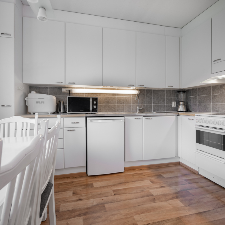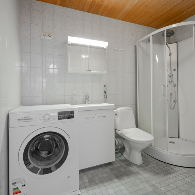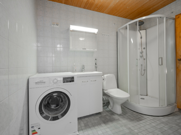 * Turnkey Inclusions: The sale includes a fully functional shower cabin (installed 2020), a very clean fridge-freezer combination, a large, new-like mirror cabinet in the living room, and a very handy lawnmower (though a battery-powered push-button lawnmower can be conveniently borrowed from the housing company).