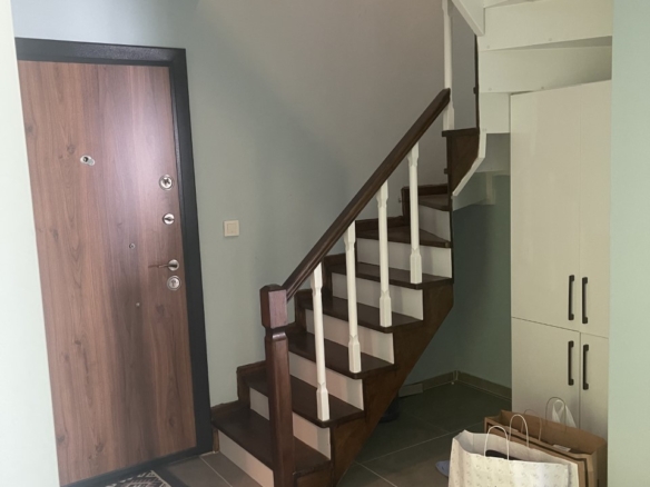 The property was built in 2020. It does not have a pool or a garden. The size of the property is 115sq metres. The upstairs can be used as separate flat as the ceilings are very high and are different to traditional duplex apartments.