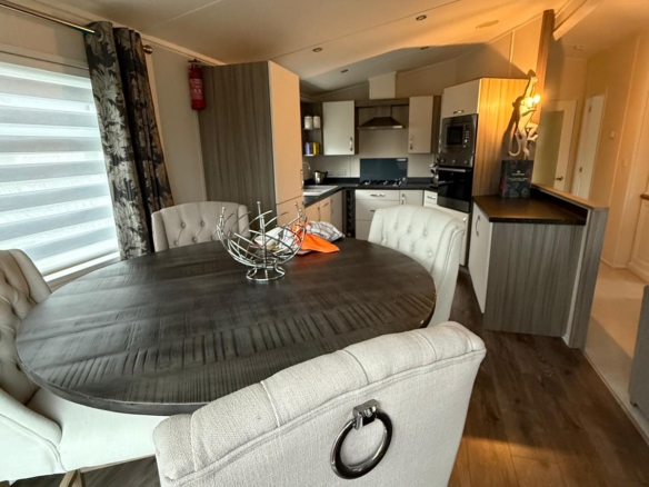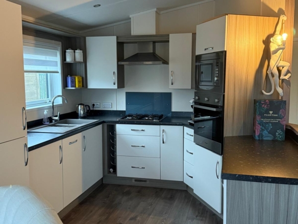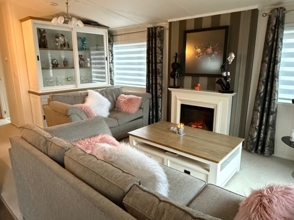 This exceptional Victory Parkview lodge, measuring a spacious 40 x 20 feet, has been thoughtfully appointed to provide a comfortable and convenient living experience. The entire lodge benefits from full double glazing, ensuring excellent insulation, reduced noise pollution, and enhanced energy efficiency. Adding to the comfort and practicality are roller shutters fitted to three of the bedrooms, providing effective shade from the summer sun and offering an added layer of security.