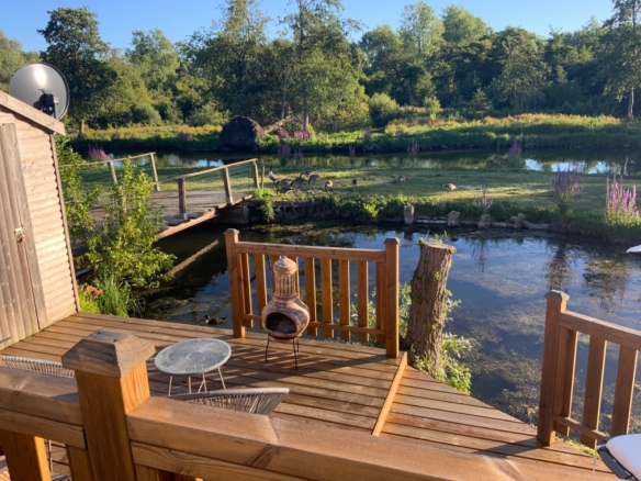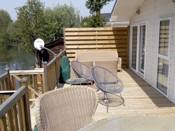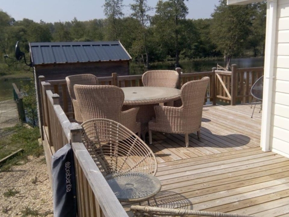 A particularly unique and desirable feature of this lodge is its own private fishing deck, extending from the side decking and overlooking one of the lakes. This offers the perfect opportunity for fishing enthusiasts to indulge in their hobby in complete privacy and convenience, right from their own property.