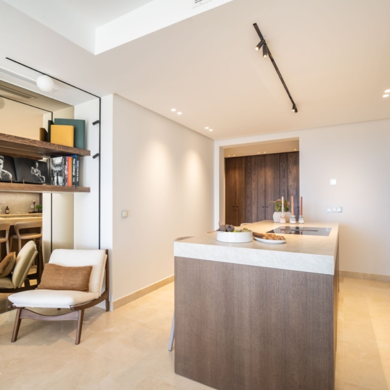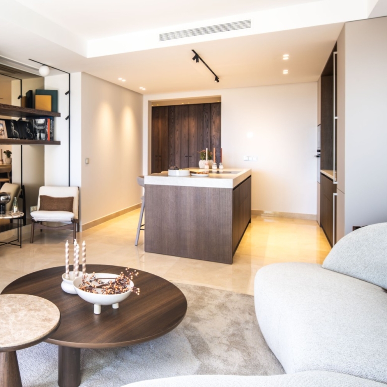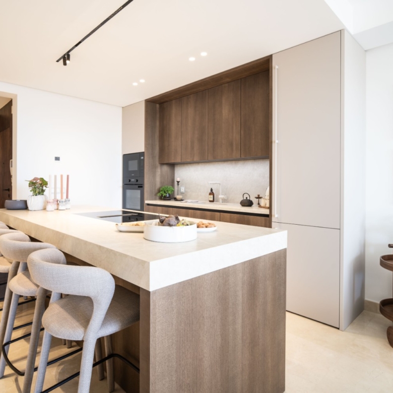 Inside, the property features an elegant open-plan design where modern aesthetics meet everyday functionality. The bright living area flows into a state-of-the-art kitchen, fully fitted with high-end appliances, ample storage, and generous workspace — ideal for effortless entertaining and comfortable living.