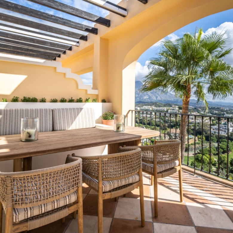 Embrace refined luxury with this outstanding penthouse, perfectly positioned in Buenavista, La Quinta, offering sweeping views of the sea, mountains, and the lush golf surroundings.