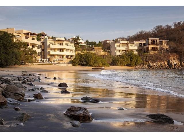 Experience beachfront luxury at its finest inside an exclusive gated community in Conejos, Huatulco! Enjoy the convenience of a wide range of onsite amenities and being only steps away from the pristine Tejoncito beach. This 2 and 3 bedroom shared ownership opportunity allows you to enjoy at least 3 hassle free weeks in paradise per year. The five star amenities and services including onsite restaurant, spa, gym, pool bar, direct beach access and a reception desk with concierge provide the ideal setting for you to sit back and relax while the staff take care of your every need. Contact us today to reserve your showing and make the next step to home ownership in paradise.
