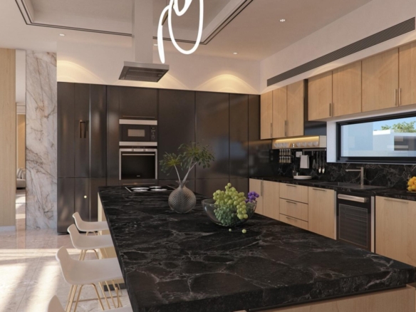 Discover coastal luxury at this exclusive beachfront villa in Ayia Napa. The lower floor offers a bedroom, bathroom, storage room, and a stylish living area. The ground floor features an open-plan kitchen, dining, and living room, plus a guest WC, outdoor deck, pool, jacuzzi, and lounge with sea views. On the first floor, three ensuite bedrooms provide privacy and comfort. The top floor showcases a rooftop garden with a barbecue area, jacuzzi, and WC for ultimate relaxation. An elevator connects all floors, and each villa includes parking for two cars. Experience the epitome of beachfront living, where luxury meets the beauty of the sea.
