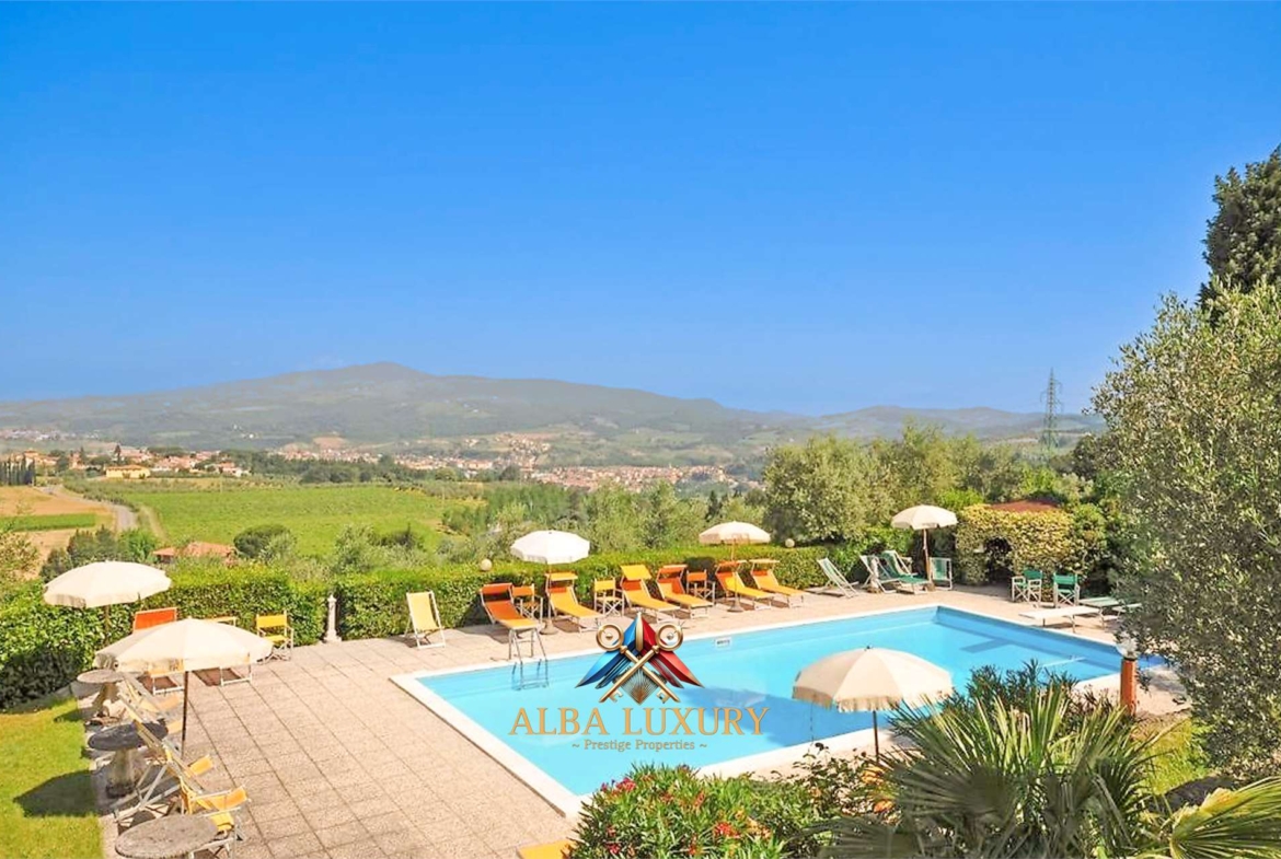Exclusive Property Immersed in Tuscan Nature – Oasis of Tranquility and Refinement. A property in a secluded and enchanting location, immersed in the lush Tuscan countryside on a quiet residential hillside, only 3 km from the town centre. With a building complex of approximately 1078 square metres and a vast plot of approximately 3 hectares, of which 3000 square metres are dedicated to a beautiful garden, this property offers an unprecedented opportunity. It comprises seven residential properties and a two-storey barn, complete with cellar, three storerooms and porches, thus offering a wide range of possibilities for both receptive and private use. In the centre of this enchanting setting are a swimming pool and a tennis court, surrounded by farmland and an impressive olive grove with no less than 670 olive trees. The properties are distinguished by their elegance and refinement, with high-quality terracotta floors, exposed beams and fine finishes. Each unit has separate fireplaces, offering a cosy and comfortable ambience, and are surrounded by a large park, with a part used as a garden and a part finished in porphyry and terracotta, in perfect style with the main building. This property is a true oasis of tranquillity and refinement, ideal for those seeking a retreat away from the hustle and bustle of everyday life, without sacrificing comfort and luxury.,
