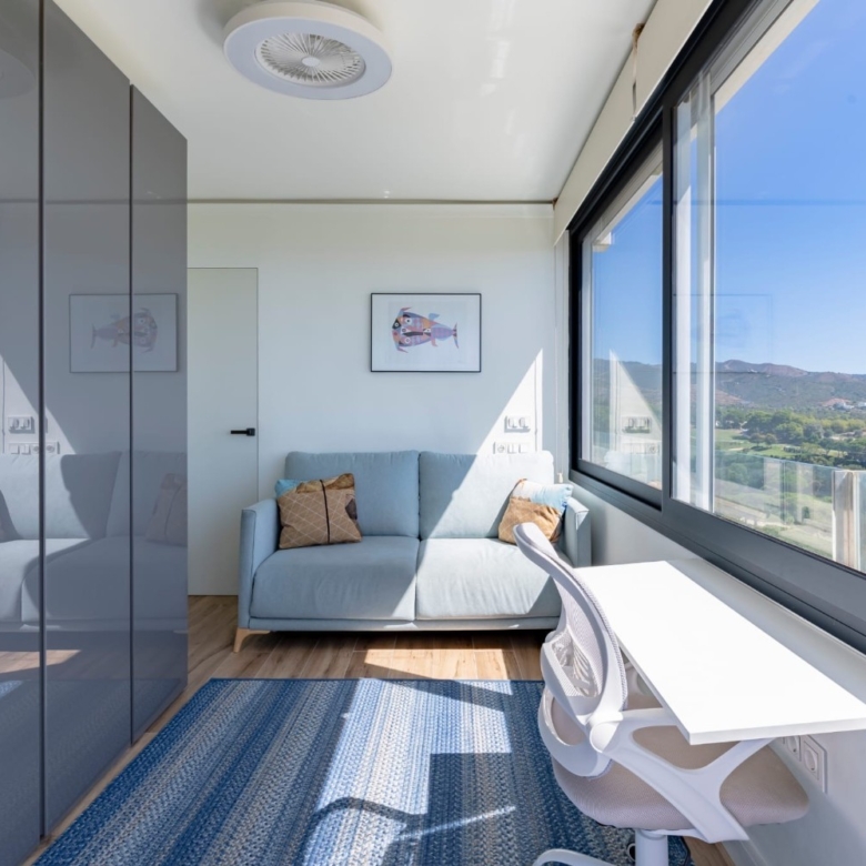 From the moment you step inside, you’re welcomed by sweeping panoramic views stretching across the Mediterranean Sea, the surrounding mountains, and the manicured greens of the golf course. Recently refurbished to the highest standards, the apartment showcases sleek modern finishes, an abundance of natural light, and expansive windows designed to highlight the stunning scenery.