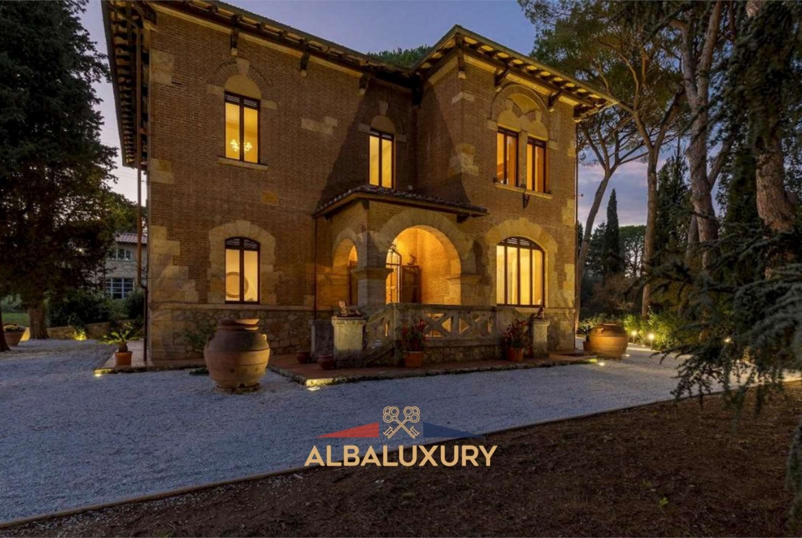 Discover a corner of luxury and tranquility with this charming villa located on the gentle hills surrounding the picturesque village of Peccioli, in the province of Pisa. This Liberty-style residence, recently renovated with a perfect blend of tradition and modernity, is the ideal retreat for those seeking an exclusive experience in the Tuscan countryside.^^Property Features:^- Villa 400 sqm spread over two levels.^- Dependance 150 sqm.^- Land 55,000 sqm with possibility to build (700 sqm for hotel accommodation, including apartments).^^Elegant Interiors: Spacious and bright rooms, with high-quality finishes in terracotta, wood, sandstone, marble, and travertine. On the ground floor, you will find a cozy living room with luxury sofas and a smart TV, a reading room with a fireplace, an open space with a dining area and a fully equipped modern kitchen, a master bedroom with an en-suite bathroom, and a guest bathroom with a washer-dryer. On the first floor, three double bedrooms with en-suite bathrooms (two with shower and bathtub, one with shower only) and a twin bedroom with an adjacent bathroom (bathtub with shower).^^Guest Dependance: The property also includes a delightful dependance, perfect for hosting friends or family with total privacy. The dependance consists of a double bedroom, a bathroom with shower, a small living room, and an independent kitchen, ensuring comfort and autonomy for guests.^^Outdoor Spaces: A park of approximately 55,000 sqm, with a garden adorned with cypress trees, maritime pines, and other trees that guarantee privacy and relaxation. There is an outdoor living area with wooden sofas and a pathway with white pebbles leading to the pool.^^Pool: Located 50 m from the villa, the 15×10 m pool is surrounded by a travertine sunbathing area with loungers and umbrellas. It features a whirlpool area, an emotional waterfall with chromotherapy, and internal lighting. The pool is salt purified and lined with emerald-colored PVC, open from the last Saturday of April until the first Saturday of October.^^Strategic Location: The villa is located a short distance from the main Tuscan tourist destinations, including Florence, Pisa, Lucca, and Volterra, as well as the beautiful beaches of the Tyrrhenian coast such as Tirrenia and Marina di Pisa. For wellness enthusiasts, the thermal pools of Casciana Terme are just 20 minutes away, while the Castelfalfi Golf Club, with its 27 holes, is 30 minutes away.^^This residence represents an extraordinary opportunity for those seeking a corner of paradise in the Tuscan countryside, perfect for moments of relaxation or for hosting special events. Contact us for further details and to discover how this villa can become your new home.,