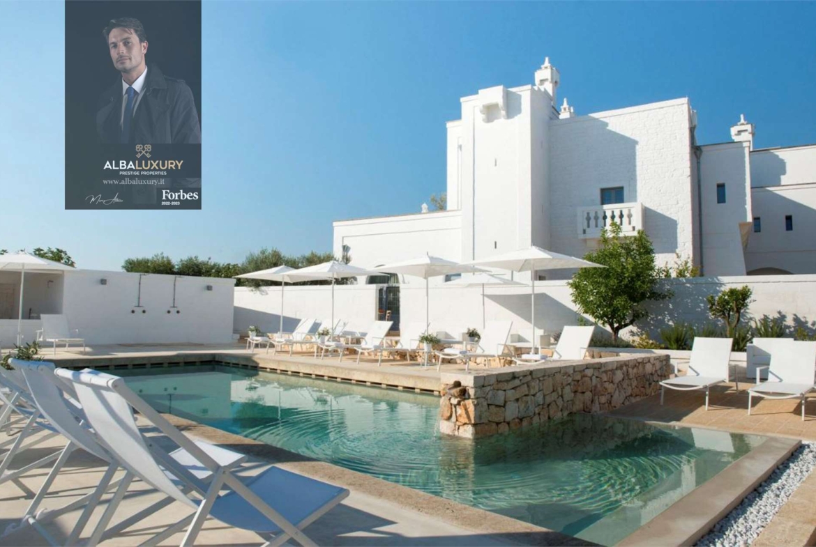 Nestled in the charming countryside of Polignano a Mare, characterized by dry stone walls, olive groves, and cultivated fields, this enchanting country chic farmhouse is a 17th-century restored cottage respecting its original architecture, where the dominant feature is the vivid white of the lime.^^Featuring 10 rooms furnished with simplicity and taste, adorned with objects and furniture from the past in natural and reclaimed materials, the farmhouse also offers the possibility of a pool hidden behind a dry stone wall, surrounded by oleander bushes, jasmine, and large lemon trees.^^In this tranquil corner, the dazzling white of the lime becomes brilliant, and the reflection of the water shining in the sun makes the red of geraniums even more vivid. A fortified farmhouse from the 1600s carefully restored, where the pristine white of the lime and that of the stone stand out, and where you can breathe the air of this land, scented by laurel, olive, and cherry trees. You can relax in its splendid outdoor spaces and its immense garden. Additionally, at your disposal is an outdoor pool equipped with sun loungers and sunbeds, along with a bar where you can enjoy refreshing cocktails and typical appetizers.^^The location is in a district of Polignano a Mare, only 5 km from the historic center and the renowned Lama Monachile, Domenico Modugno’s statue with the waterfront, and Grotta Palazzese.^^Refined rooms, adorned with frescoes and precious floors, preserve a rural spirit that does not get lost among live lime walls and details where time seems to stand still. Transparent and light fabrics, special chandeliers, delicate sheets give the double rooms a unique beauty and create an atmosphere suitable for rest and relaxation. Some suites have a private external patio, fireplace, sea view, pool view, or garden view. All rooms include a flat-screen TV and a private bathroom complete with bathrobes, slippers, and toiletries.,