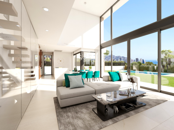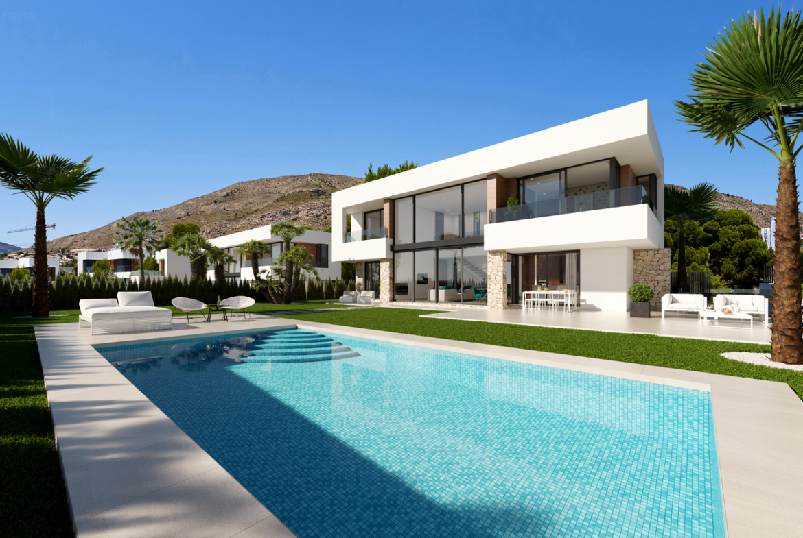 Girasol Homes is delighted to present Seaview 4! 4km from the sea in Finestrat. Detached new build build with private pool and garden. Located in the most exclusive residential area on the Costa Blanca in Alicante. Comprising of 3 Bedrooms, 3 bathrooms, the Villa offers tranquility and security as we as enjoying an attractive setting between the sea and mountains. Integrated kitchen, living/dining, comes fully furnished with extractor over and induction hob installed on the island. It has a wood barbecue in the garden, pre-installation for ducted air conditioning and installation of home automation. The Villa include a basement and garage.