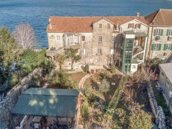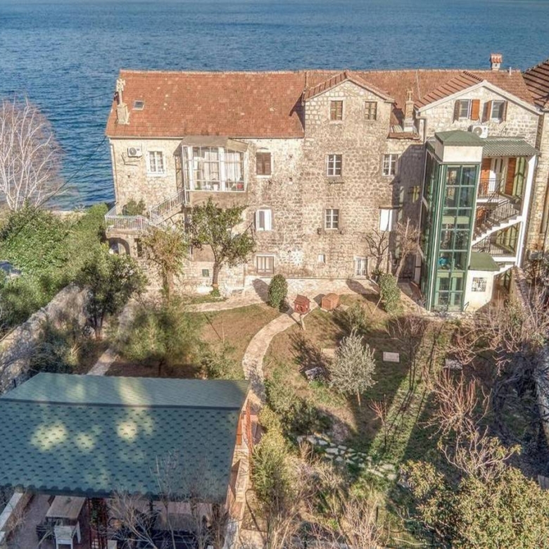 This first-line stonevilla for sale in Prcanjhas a beautiful view of Boka Bay and the surrounding mountains. Prčanj is a small town along theBay of Kotor, opposite Dobrota, and between Muo and Stoliv, only 5km from the Old Town of Kotor. The Prčanj’s waterfront consists of a long line of stone villas, unified by their beautiful facades and separated by gardens and olive orchards. Due to its favorable geographical position, Prcanj has a pleasant climate and is known as a natural climatic health resort especially suitable for people with respiratory issues.This 112m² villa has three levels. On the ground floor (38m²) are the kitchen and the living room, with high ceilings and windows with a panoramic view of the bay. There is also a pantry and technical room (Video surveillance, air conditioning, video intercom, WIFI, fire, and security protection). The second level consists of a large entry hall with three bedrooms, bathrooms, and with small kitchen and saloon with a handmade fireplace. On the third level, there is a master penthouse bedroom with a bathroom, with a sea-view terrace.The villa is fully furnished for sale. House is under video surveillance, CCTV cameras system monitors and records at a 30-day interval. Floors are covered with Terracotta on the ground floor and with solid oak wood on the other levels. First-quality Italian ceramics are in the bathrooms. There are electric convector heaters installed for heating. There is access to KLEEMANN brand panoramic hydraulic passenger lift through the stairhead. Wooden security doors and window shutters are on the ground floor.In the 565m² backyards, there is a water well (300+ years old), various fruit trees and plants customized to the garden, a small storage room, and a 64m² pergola (40m² with roof and 24m² is open). This garden is a perfect quiet paradise for your family and friends’ gatherings and celebrations. There is an underground irrigation system installed in the garden controlled by the HUNTER brand of USA. To protect the environment, the house’s old and traditional septic system has been replaced with a BIO-SEPTIC system imported from Italy.In front of the villa, there is a 56sqm customized pontoon available. On the pontoon, there are two parking spaces. Rattan furniture (glass/rattan table and four rattan chairs) is available for breakfast, lunch, and dining at the pontoon. Pontoon features a 3x3m square movable shade available. The pontoon is equipped with a Spanish-made stainless steel pool-type ladder easing sea access. Also, 56m² of the sea in front of the pontoon is cleaned of seaweeds, then completely covered with 0-4mm white sand to ease the people swimming comfortably. The pontoon and car parking area is being monitored with a CCTV camera.Settled in a peaceful and quiet area with a beautiful view and the nearby vicinity of all necessary amenities, this villa offers great potential and is an excellent investment opportunity. It offers a dream combination, and a peaceful environment, while also being close to the Tivat airport (10km), the luxurious marina of Porto Montenegro (12km), and the beautiful Old Town of Kotor (6km).To find out more information about this property, don’t hesitate to get in touch with us.