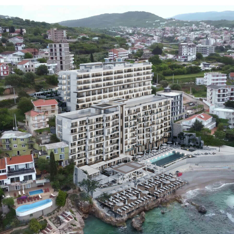 Discover a unique opportunity to own a two-bedroom apartment at the exclusive Marin Bay residential complex, the first and only 5-star mixed-use hotel on the Bar Riviera. Situated directly on the seafront in the peaceful Dobra Voda area, Marin Bay offers a perfect blend of modern luxury and untouched nature.The complex is divided into two sections: Block A offers premium residential apartments for sale, and Block B is a hotel designated for a world-class franchise.Marin Bay Highlights:Private beach1,000m² wellness center with fitness areaIndoor and outdoor poolsSky bar and beach barFine dining restaurantsLarge conference hall (100+ guests)Professional management and maintenanceRental program available for passive income (optional participation)Designed with a cascading layout, every apartment enjoys an unobstructed sea view, creating a true Mediterranean retreat. All units are sold fully furnished on a turnkey basis, finished with high-quality materials and designed for maximum comfort.Available Two-Bedroom Apartments:Ground floor (-5 level), 66.14 m², €340,000First floor (-4 level), 69.68 m², €375,000First floor (-4 level), 65.45 m², €395,000First floor (-4 level), 67.09 m², €395,000First floor (-4 level), 75.61 m², €340,000Second floor (-3 level), 70.47 m², €385,000Second floor (-3 level), 70.68 m², €410,000Second floor (-3 level), 64.65 m², €390,000Second floor (-3 level), 74.52 m², €395,000Third floor (-2 level), 70.10 m², €419,000Third floor (-2 level), 66.27 m², €400,000Third floor (-2 level), 79.94 m², €444,000Fourth floor (-1 level), 70.91 m², €435,000Fourth floor (-1 level), 69.68 m², €425,000Fourth floor (-1 level), 66.93 m², €410,000Fourth floor (-1 level), 78.06 m², €455,000Fourth floor (-1 level), 71.47 m², €445,000Fifth floor (0 level), 65.80 m², €410,000Sixth floor (1 level), 72.50 m², €445,000Sixth floor (1 level), 90.49 m², €485,000Apartment owners can generate passive income by including their units in the hotel’s rental program, though independent rental is not allowed.Dobra Voda is a quiet, family-friendly coastal resort nestled between Bar and Ulcinj, closer to the vibrant port city of Bar. Bar is the only Montenegrin coastal city active year-round, offering excellent infrastructure, shopping centers, and a ferry connection to Italy (Bar-Bari line).Bar City Center: 10-minute drivePodgorica Airport: 45 minutesTivat Airport: 1 hourFuture highway access will soon provide even faster travel across the region.Why Invest in Marin Bay?First-line seafront property with panoramic viewsAccess to exclusive 5-star amenitiesTurnkey delivery with luxury furnishingsRental income potential with hotel managementStrong investment value in the growing Montenegrin coastal marketExperience Marin Bay’s perfect balance of luxury, comfort, and nature. Contact us today to schedule a viewing or to get more information about available units.