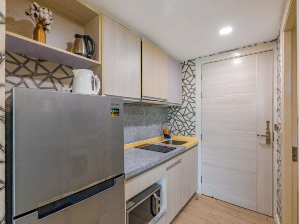 This fully furnished studio unit on the 4th floor offers a comfortable 27 sqm of modern living space with a peaceful city view. The unit is well-maintained and ready to move in, making it ideal for personal use or investment.