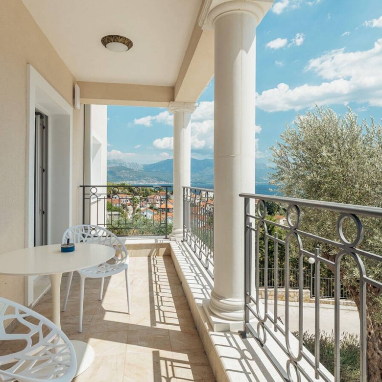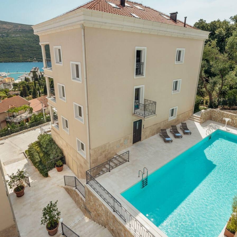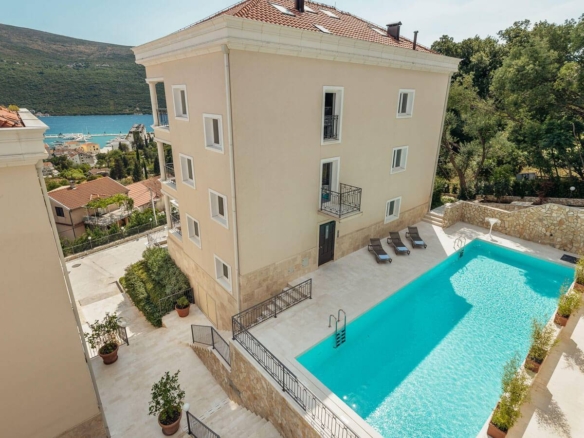 Discover serene coastal living in Portofino Village, located in Kumbor, at the heart of the Herceg Novi Marine Riviera. Known for its peaceful atmosphere, Kumbor offers the perfect sanctuary from everyday bustle while showcasing the majestic beauty of the Bay of Kotor. Just 300 meters from the beach, this exceptional residential village combines tranquility, convenience, and breathtaking panoramic sea views.A Luxurious Coastal Community: Portofino Village comprises five buildings with a total of 17 apartments and five penthouses, a spa and fitness center, and a swimming pool—all affording magnificent views of the Bay of Kotor. Each apartment features:An open-plan living room, dining area, and kitchenA master bedroom with a private bathroomThree additional bedrooms, with two bathroomWalk-in wardrobeA spacious terraces to enjoy the stunning sea panoramaPenthouse apartments are duplexes and include a private rooftop terrace with a jacuzzi for the ultimate luxury experience.Available Three-Bedroom Apartments:Building 805 – 13(Penthouse, Duplex): Area 121.7m² + 42.6m² terrace | Price: €650,000Building 806 – 14: Area 125m² + 54.6m² terrace | Price: €600,000Each apartment comes fully furnished, air-conditioned, and move-in ready.Portofino Village apartments offer Premium Services and Amenities. Maintenance costs cover a 24/7 concierge, on-site maintenance, a video surveillance system, a swimming pool, complimentary WiFi throughout the complex, parking services, and a shuttle to the Portonovi Yacht Marina. You can enjoy spa treatments, apartment cleaning, and food and drink delivery for an additional fee. Partner discounts are available for taxi and sea transfers, yacht charters, catering, and more.Surrounding the complex are beaches with varying sand and pebble options, all boasting crystal-clear Adriatic waters and captivating Bay of Kotor views. The nearby marinas Porto Novi and Porto Montenegro offer services to meet the highest standards, while local Mediterranean and European restaurants cater to discerning tastes. At the cozy Fan Fani beach, reserved sun loungers await Portofino Village residents, complete with towels, sun protection, and thermal water. Refreshing drinks are easily accessible from the nearby restaurant, and a convenient transfer is provided.If these apartments enchant you, contact us for more details or to arrange a viewing. Your dream coastal retreat is waiting.