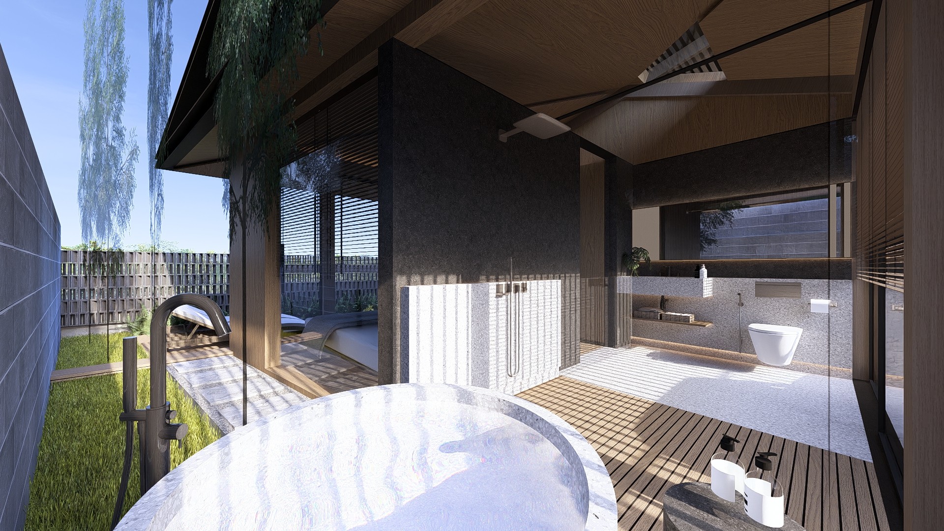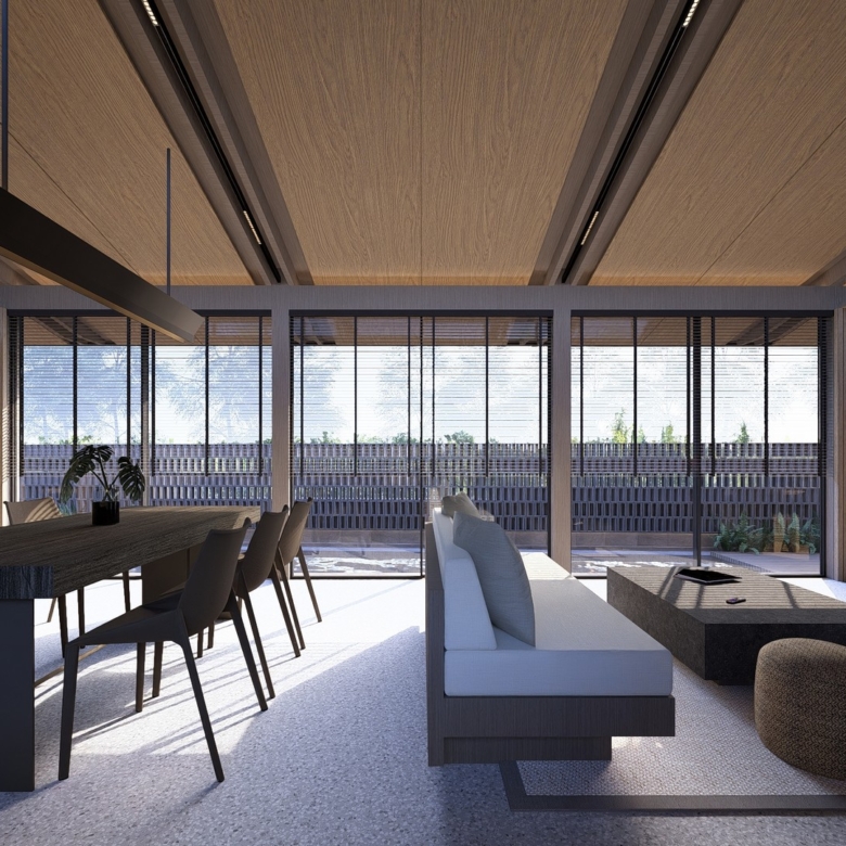 This single-storey, two-bedroom villa sits on a freehold plot of 200 sqm, with a building size of 95.25 sqm. The design blends contemporary elegance with the comfort of fully enclosed living and dining areas. The villa features a fully equipped enclosed kitchen, a cozy living room with TV and sofa, and two modern bathrooms complete with a bathtub, rain shower, and sleek single sink. Built to Australian standards, the villas promise quality construction and smart living: all home systems are integrated into a cutting-edge smart home platform, remotely controllable from your mobile device.