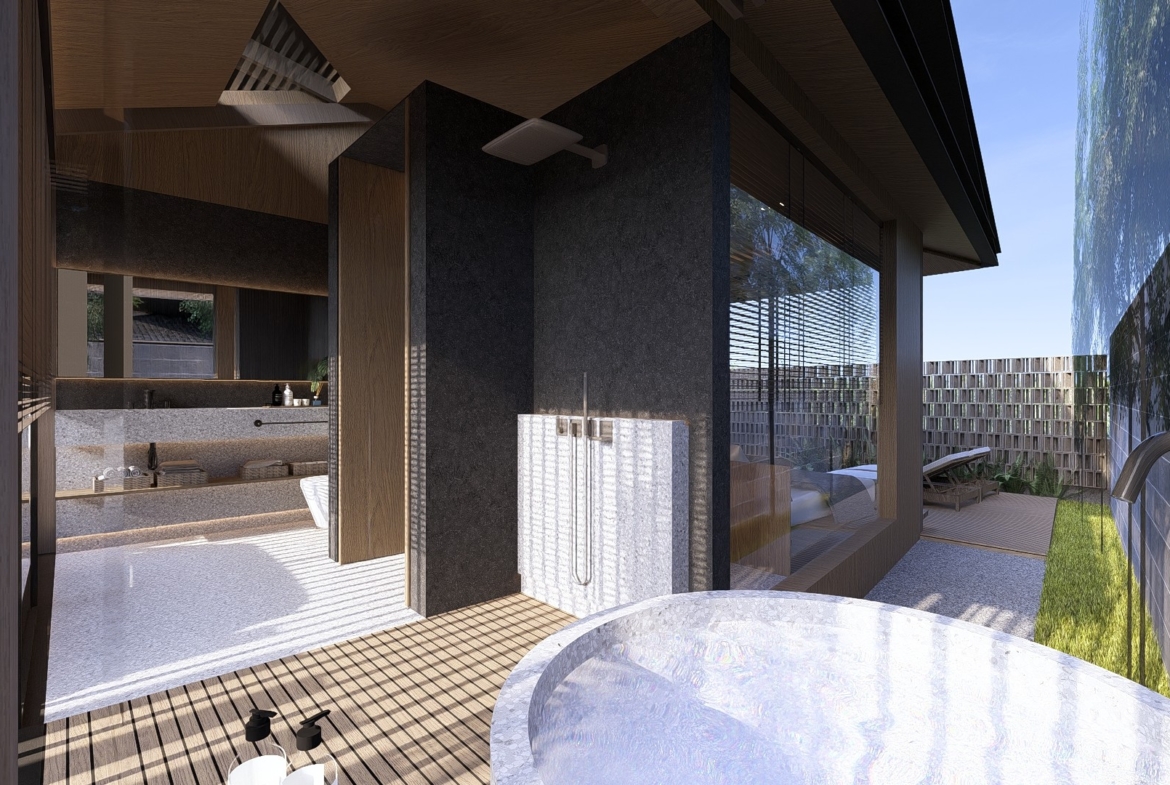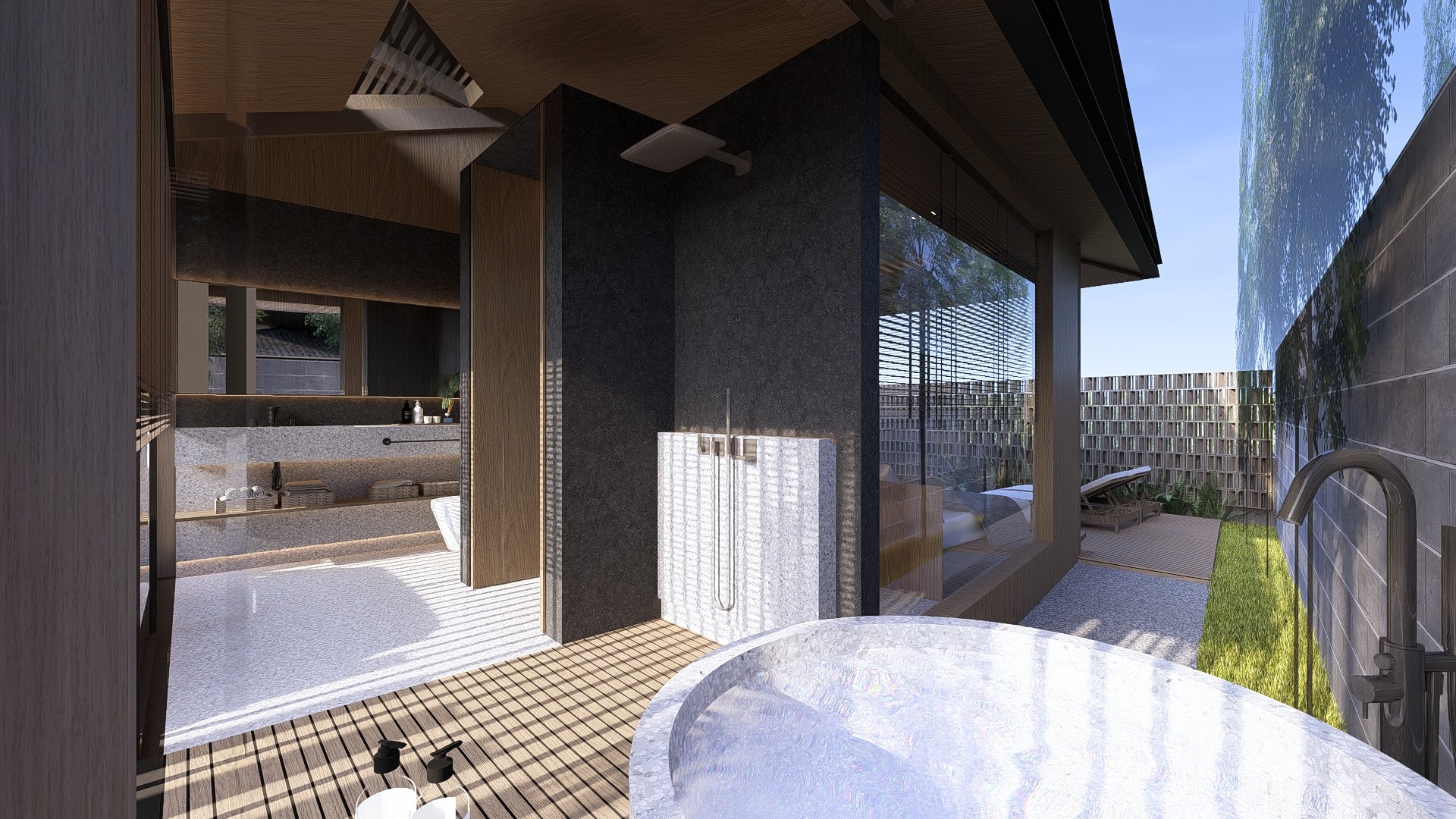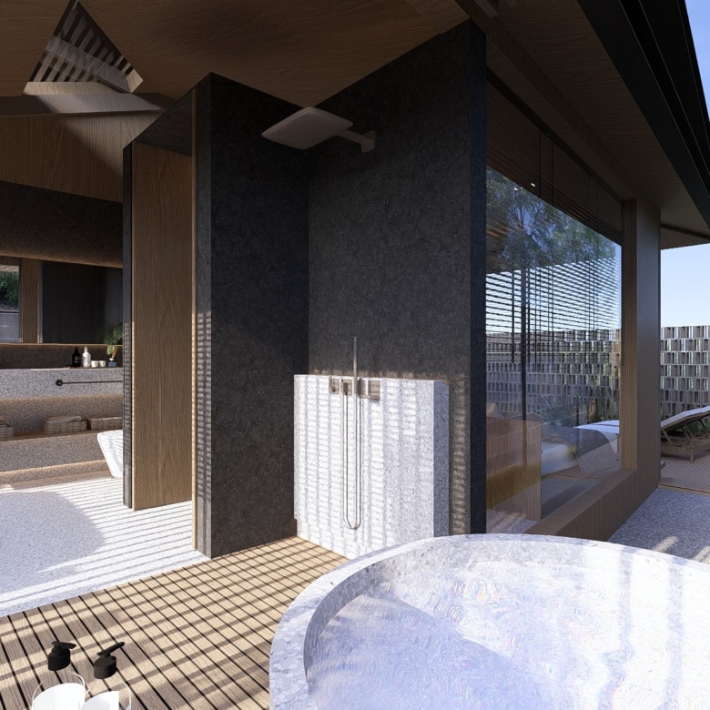 This single-storey, three-bedroom villa sits on a freehold plot of 312 sqm, with a building size of 130 sqm. The design blends contemporary elegance with the comfort of fully enclosed living and dining areas. The villa features a fully equipped enclosed kitchen, a cozy living room with TV and sofa, and two modern bathrooms complete with a bathtub, rain shower, and sleek single sink. Built to Australian standards, the villas promise quality construction and smart living: all home systems are integrated into a cutting-edge smart home platform, remotely controllable from your mobile device.