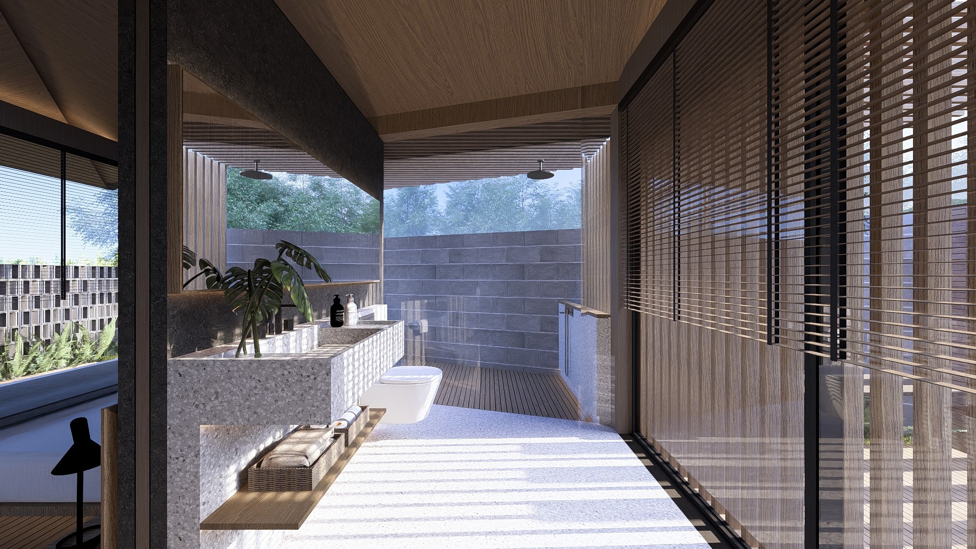 This single-storey, two-bedroom villa sits on a freehold plot starting from 256 sqm, with building sizes from 100.36 sqm. The design blends contemporary elegance with the comfort of fully enclosed living and dining areas. Each villa features a fully equipped enclosed kitchen, a cozy living room with TV and sofa, and two modern bathrooms complete with a bathtub, rain shower, and sleek single sink. Built to Australian standards, the villas promise quality construction and smart living: all home systems are integrated into a cutting-edge smart home platform, remotely controllable from your mobile device.