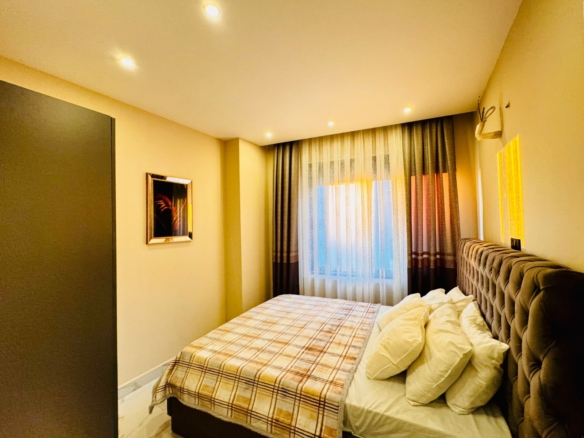 Apartment for sale in Oba Antalya – Discover this beautifully furnished 1+1 apartment for sale in Oba Antalya, located in the sought-after Sea Pearly Garden complex. Positioned on the 3rd floor and facing south-west, this 50 m² unit offers a bright and cozy living space. The building is equipped with two elevators and is situated close to major conveniences—just 2.5 km to the beach, 1.5 km to the hospital, and 1.7 km to Alanyum shopping center.