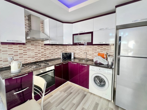 Fully furnished apartment for sale in Mahmutlar – This 1+1 apartment for sale in Mahmutlar is 60 m² and located on the 3rd floor of the YİGİTER APARTMANI. It has a west-facing orientation, offering plenty of natural light. The apartment is fully furnished, providing a ready-to-move-in living space. The building is 14 years old and has a monthly fee of 500 ₺.