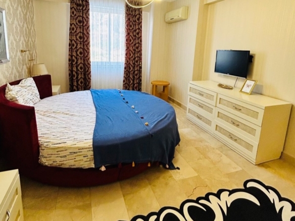 Goldcity Kargıcak 2+1 apartment – This Goldcity Kargıcak 2+1 apartment offers a spacious 110 m² living space and is fully furnished. Located on the third floor, this apartment has a northeast orientation and includes 2 bathrooms and WC. Residents enjoy access to full amenities including a range of social facilities. The apartment is just 2500 meters from the beach, providing a tranquil setting with convenient access to the sea.