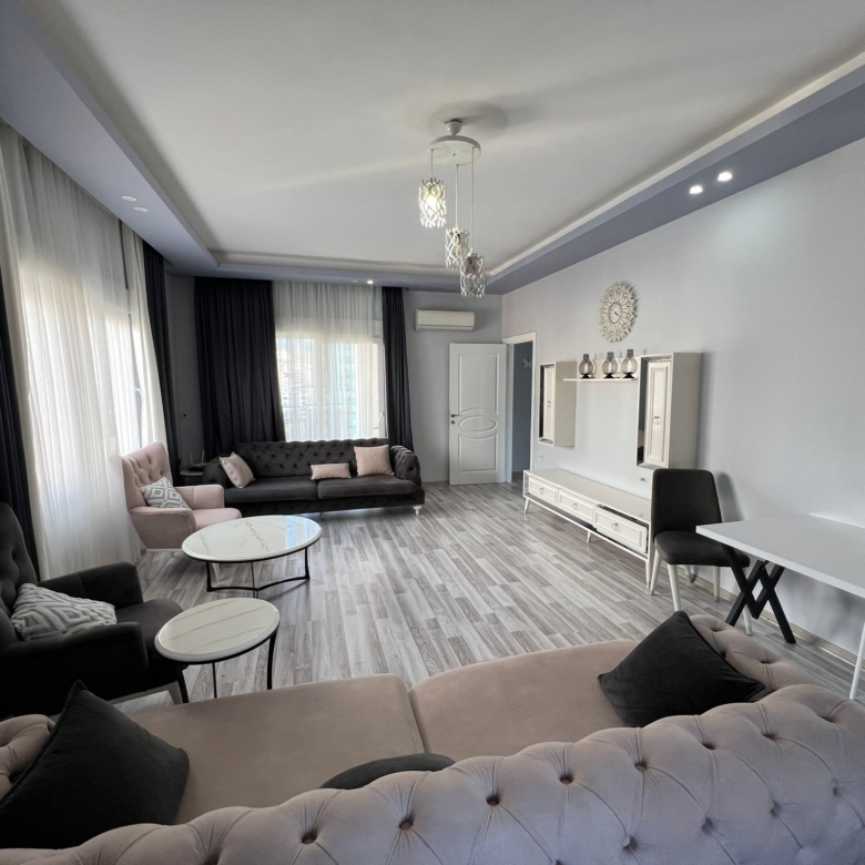 Mahmutlar 2+1 fully furnished apartment – This fully furnished 2+1 apartment in Aral Residence, Mahmutlar, offers a prime location on Barbaros Street, just 100 meters from the beach. Located on the 6th floor with a northeast-facing view, the apartment spans 110m² and features an open-plan American kitchen, making it ideal for modern living.