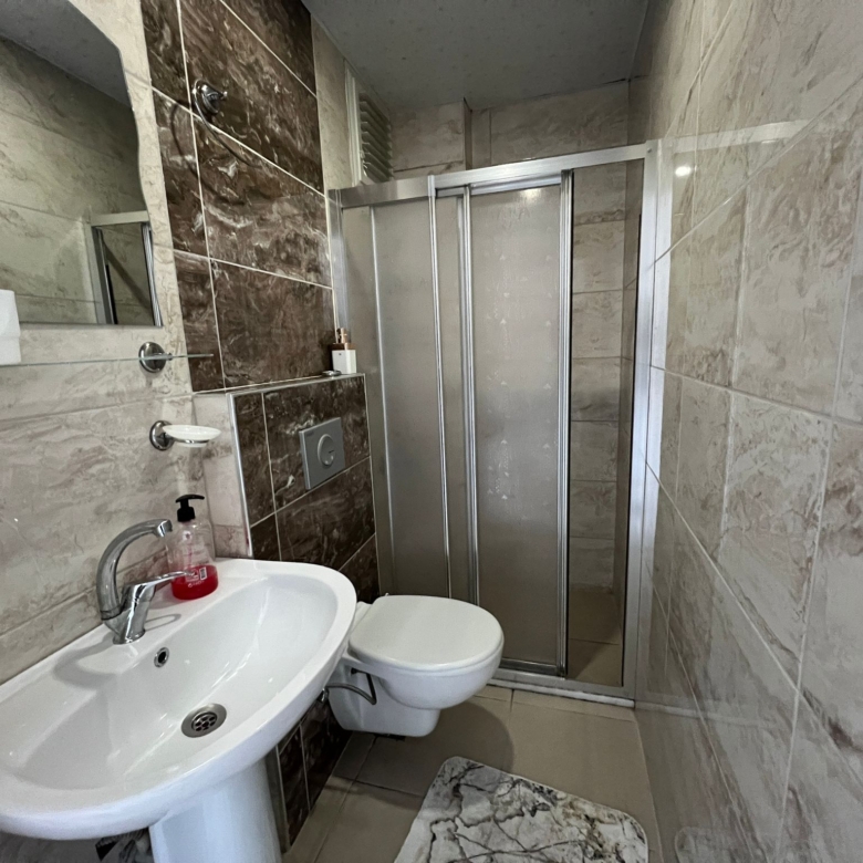 The complex includes excellent amenities such as an outdoor swimming pool, BBQ area, and security cameras for added peace of mind. Additionally, the building is equipped with a generator, ensuring you won’t be left without power. This property is an excellent choice for those seeking a comfortable home or investment in Mahmutlar.